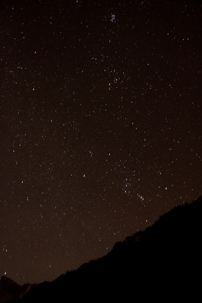 No, it's not the Van Gogh painting. With cities far far away, and very little light around, you can see a lot of stars in the sky. Can you spot Orion, Taurus and Pleidaes in the sky above the Tunnel view mountains?