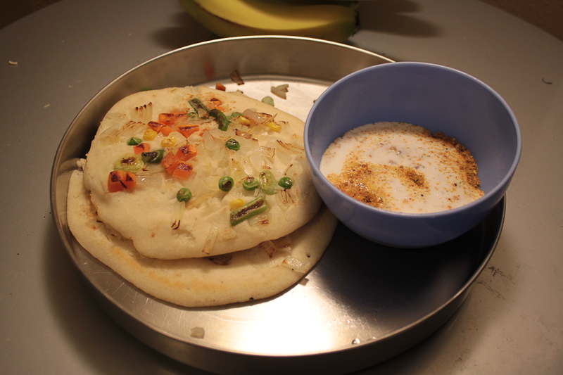 Vegetable oothappam and milagaipodi