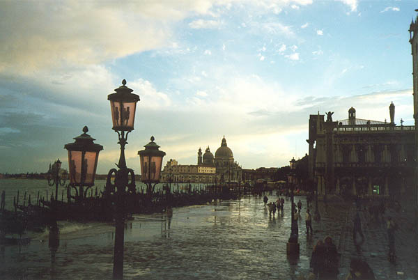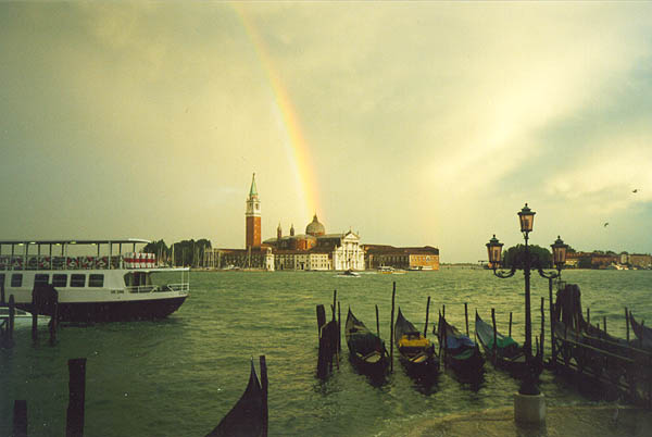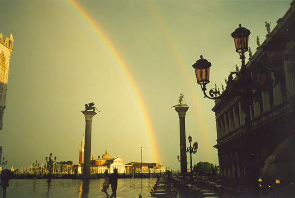 Double rainbows cutting the pillars in the Piazza de San Marco in Venice