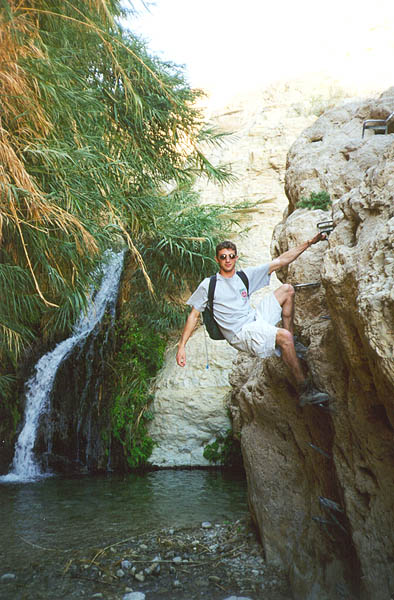 Brian hanging on the path to one of the oasis' caves