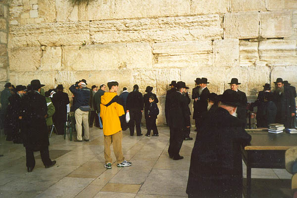 The Kotel, or Western Wall, during Mincha (afternoon services)